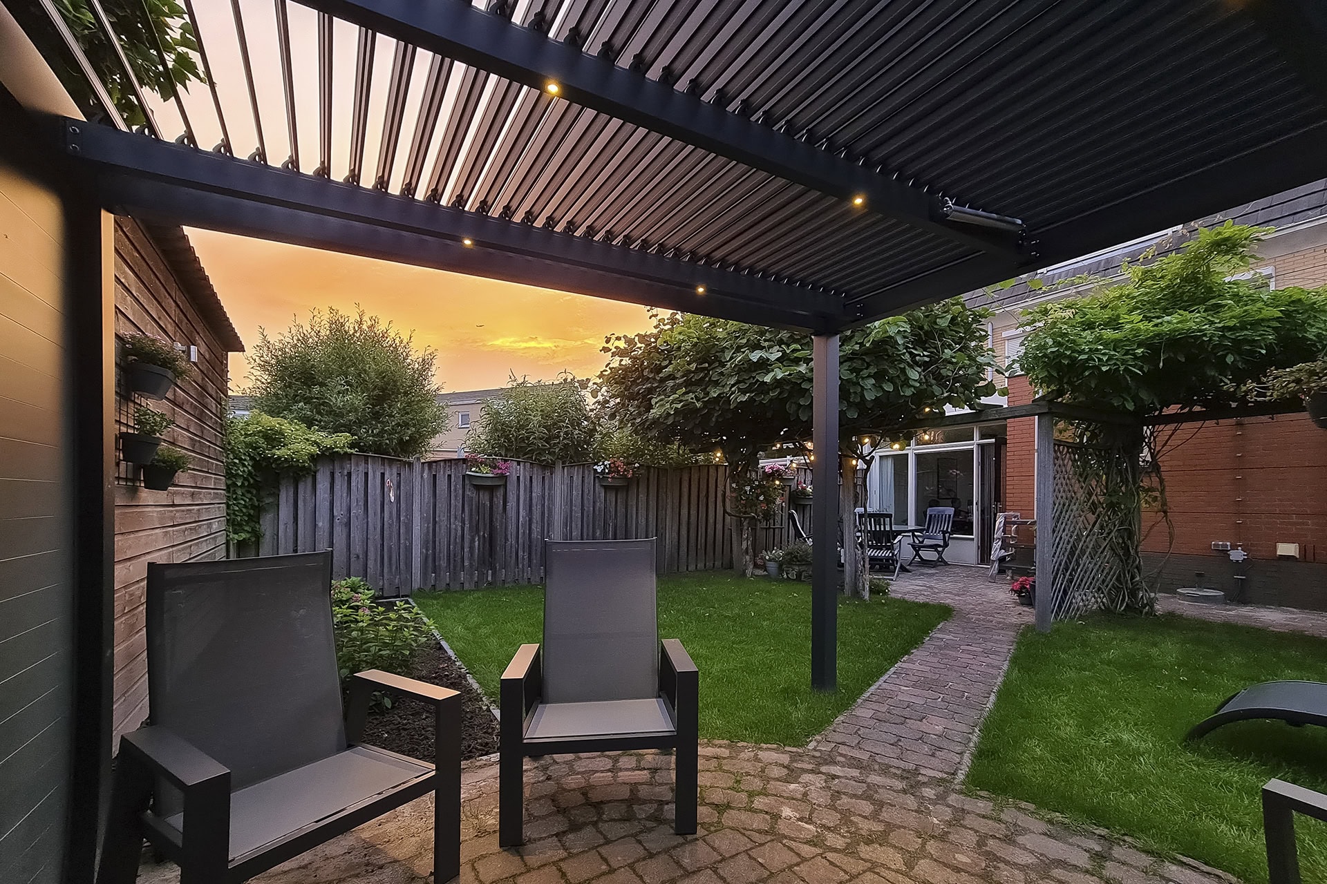 Wilt je genieten van de zon? Zet je de louvers helemaal open. Schijnt de zon te fel? Sluit ze iets of volledig. Regent het? Dan sluit je de lamellen helemaal. Zo kun je het hele jaar door van je Infinity genieten. Gewoon op jouw eigen terras.