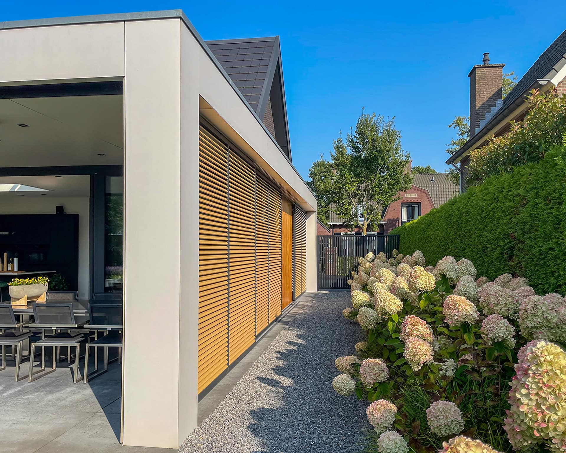 In de winter is alle warmte welkom en gelukkig de zon niet meer zo fel. Dan zet je de lamellen helemaal open en profiteer je van inkomend daglicht en zonnewarmte. Met kantelbare lamellen beïnvloed je dus de thermische schil. Daarbij versterken ze het karakter van je huis en zijn ze gewoon mooi om te zien. Functioneel, praktisch en esthetisch.
