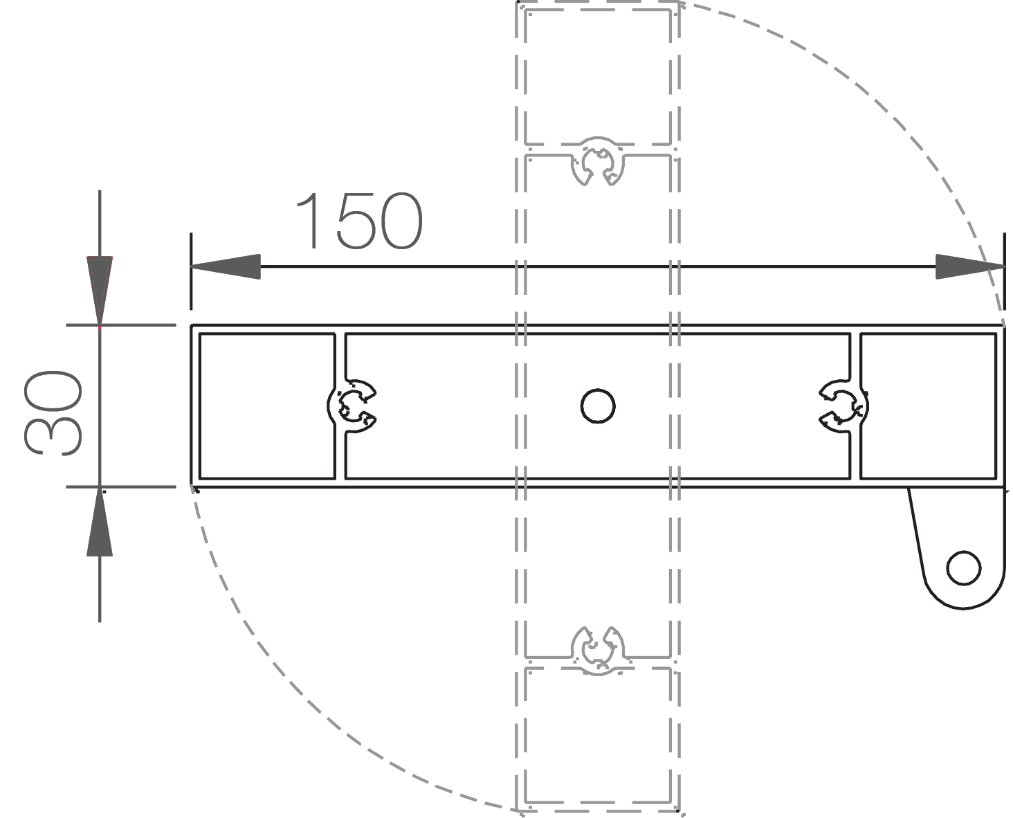 Hiernaast zie je een schematische weergave van een RT150-T lamellensysteem. Dit bestaat uit minimaal een kader en een aantal lamellen.