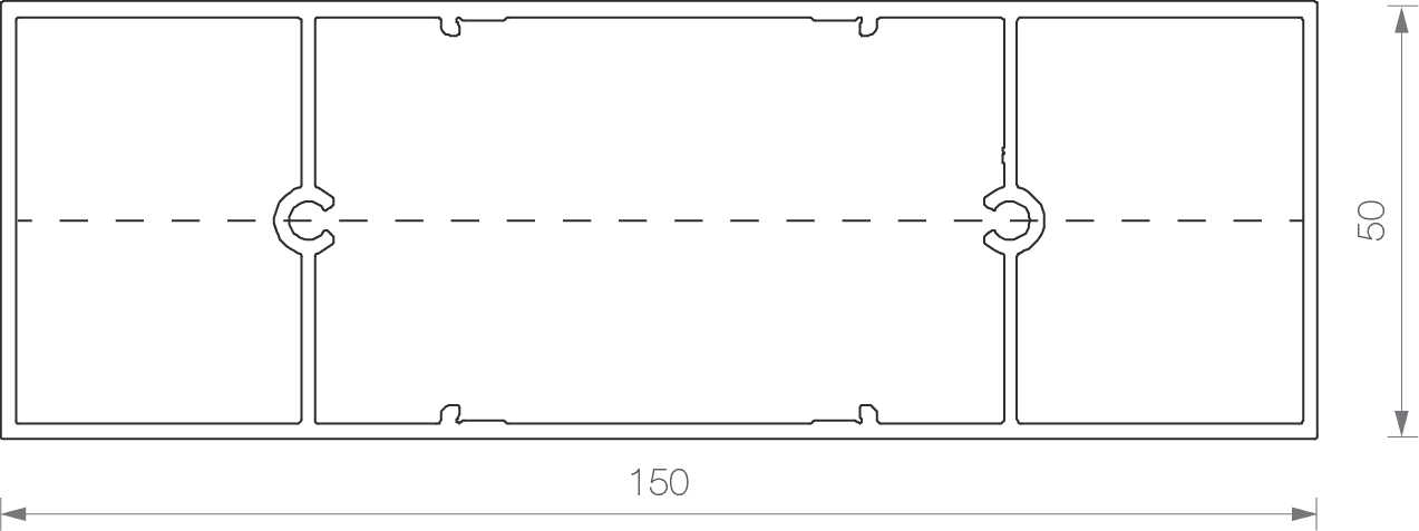 De RT150-XF is gemaakt van aluminium. Het profiel wordt gevormd tijdens extrusie. De letters RT verwijzen naar de rechthoekige vorm.