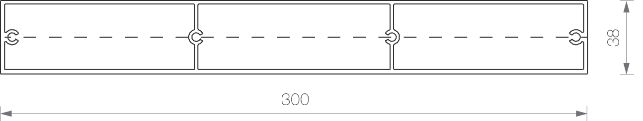 Het getal duidt de breedte van de lamel aan, hier 300 mm. Zijn de louvers gesloten, dan sluiten ze bijna op elkaar aan. Er komt wat licht tussendoor.