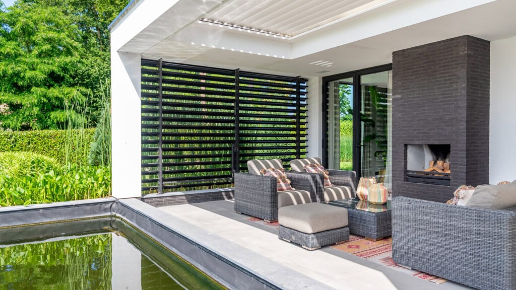 De derde optie is houtlook. De lamellen zien er dan uit als hout, maar met het gemak van aluminium.