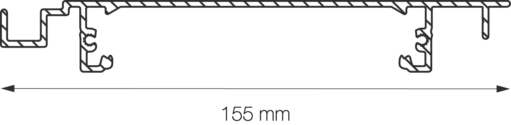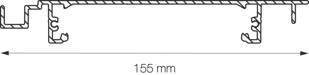 Hiernaast zie je een schematische weergave van een UNIQUE 155E lamellensysteem. Dit bestaat uit minimaal twee dragers en een aantal lamellen.