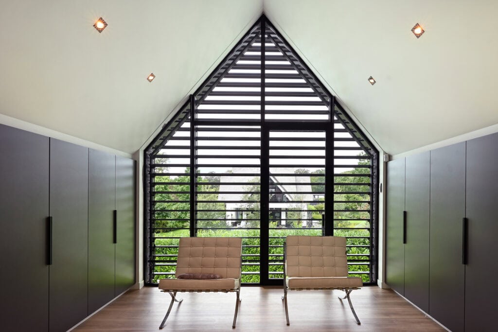 De UNIQUE 155E louver is gemaakt van aluminium. Het kenmerkende profiel wordt gevormd tijdens extrusie, vandaar de toevoeging van de letter E.