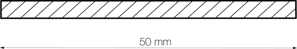 De lamel is 50 mm breed en 3 mm dik. Sluit je de louvers, dan vallen ze over elkaar. Er komt geen licht tussen de lamellen door.