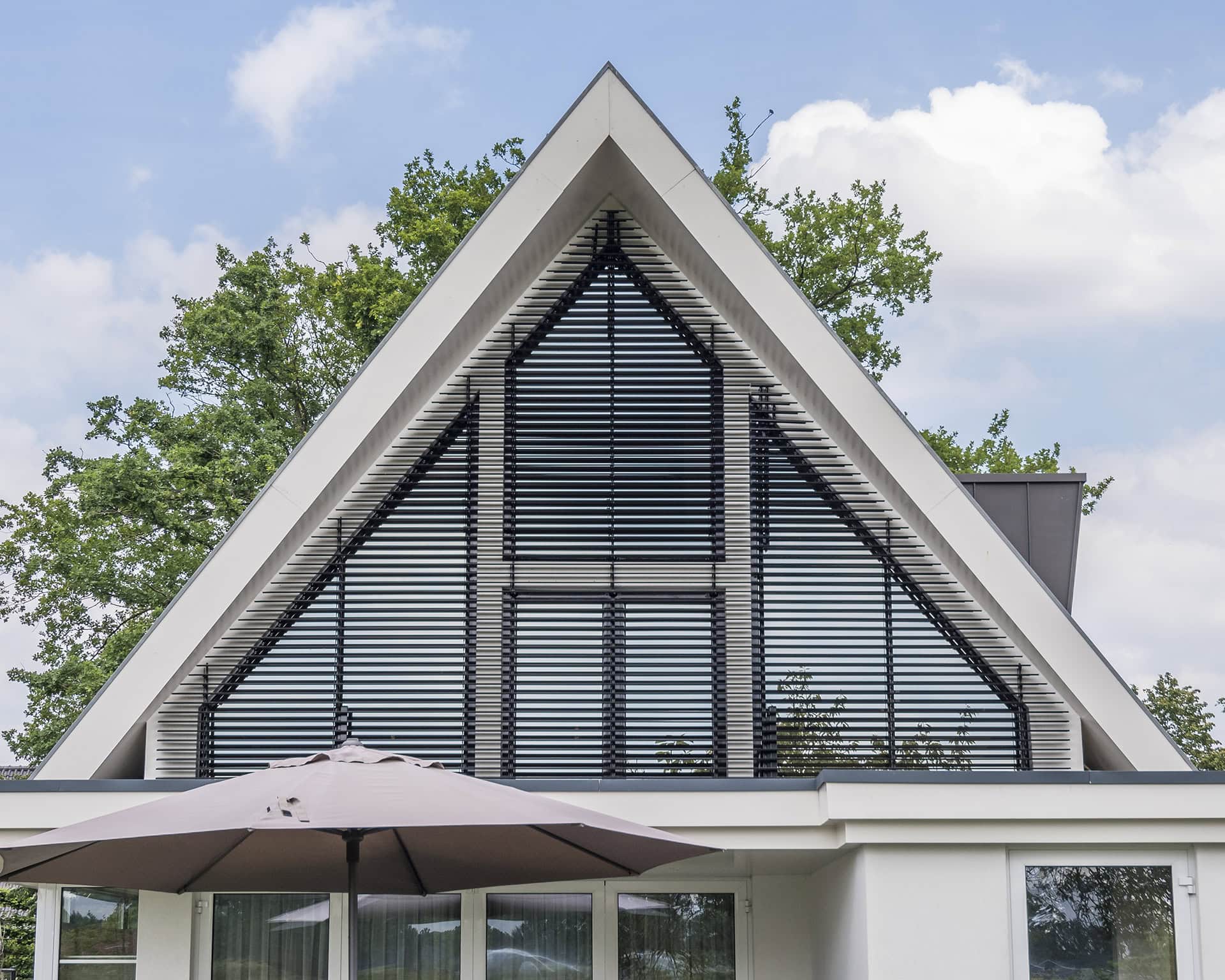 De derde optie is houtlook. De lamellen zien er dan uit als hout, maar met het gemak van aluminium.