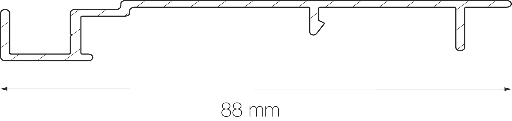 De stapgrootte (S), is de afstand tussen twee lamellen. Dat is hier 70 mm, de 88E maakt namelijk gebruik van het UNIQUE 70 systeem.
