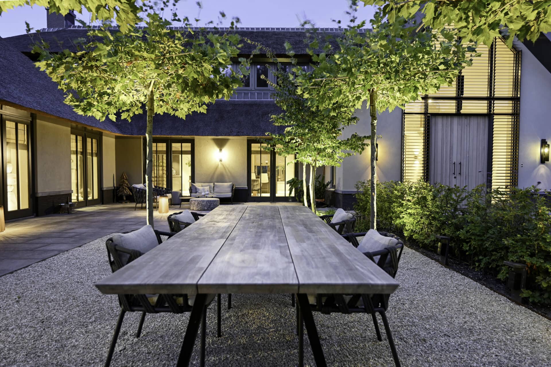 Een landhuis is in opdracht van Aannemersbedrijf Van der Windt uitgerust met twee unieke lamellensystemen. Aan de voor- en achtergevel zijn bij de ramen boven bij de deuren kantelbare lamellen geplaatst. Deze lamellen lopen links en rechts van de entree door tot aan de begane grond. De lamellen worden aangedreven door een motor die centraal boven de deuren is gepositioneerd.