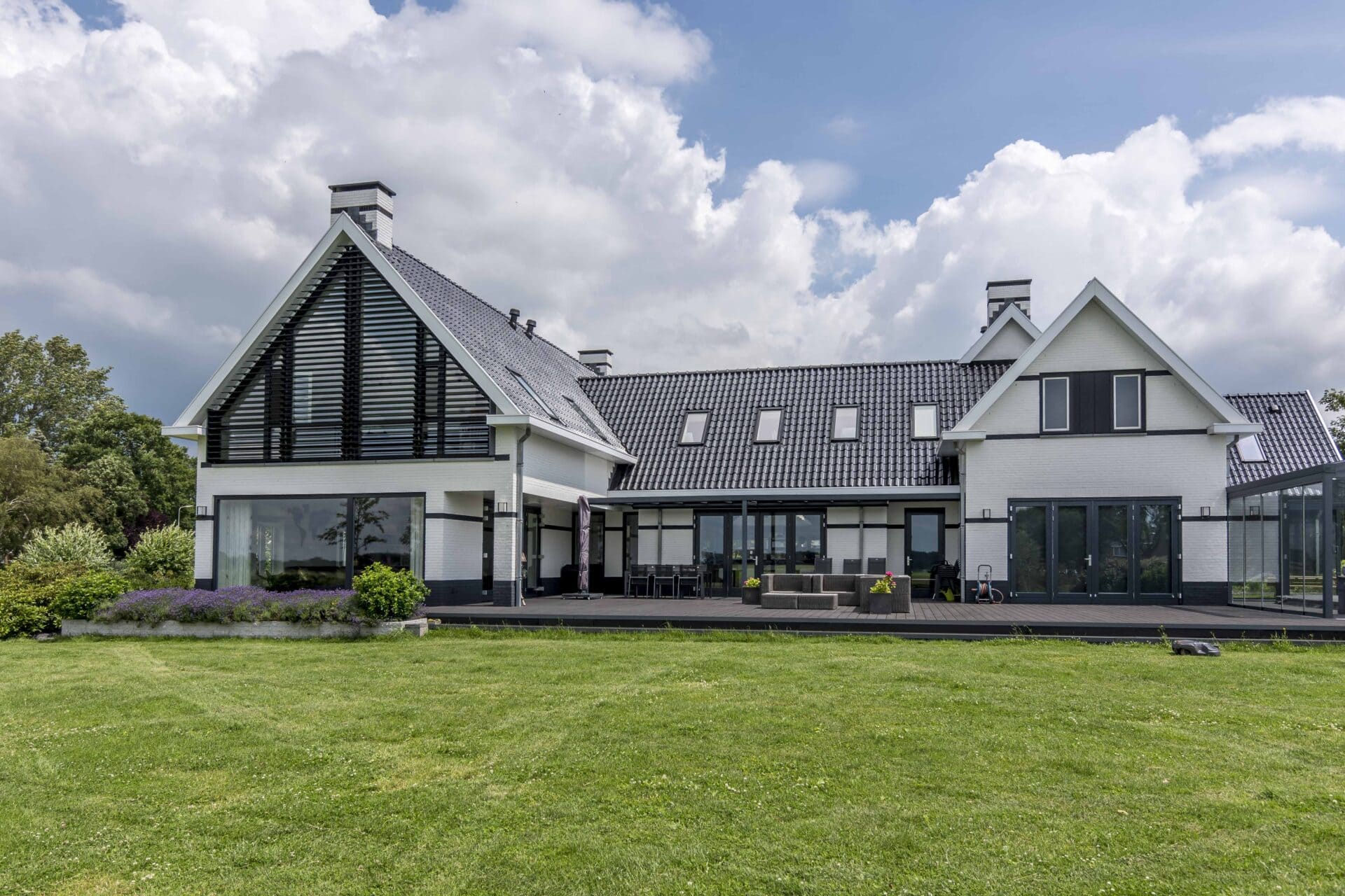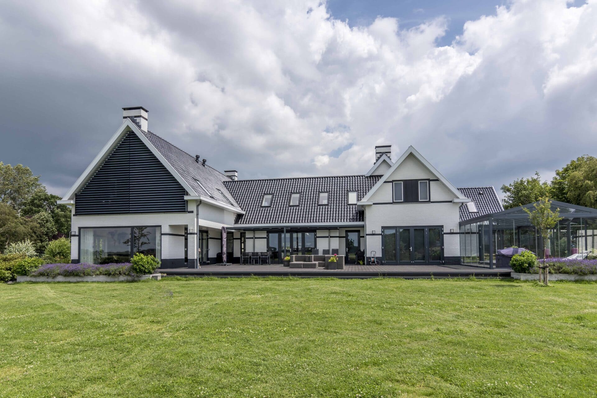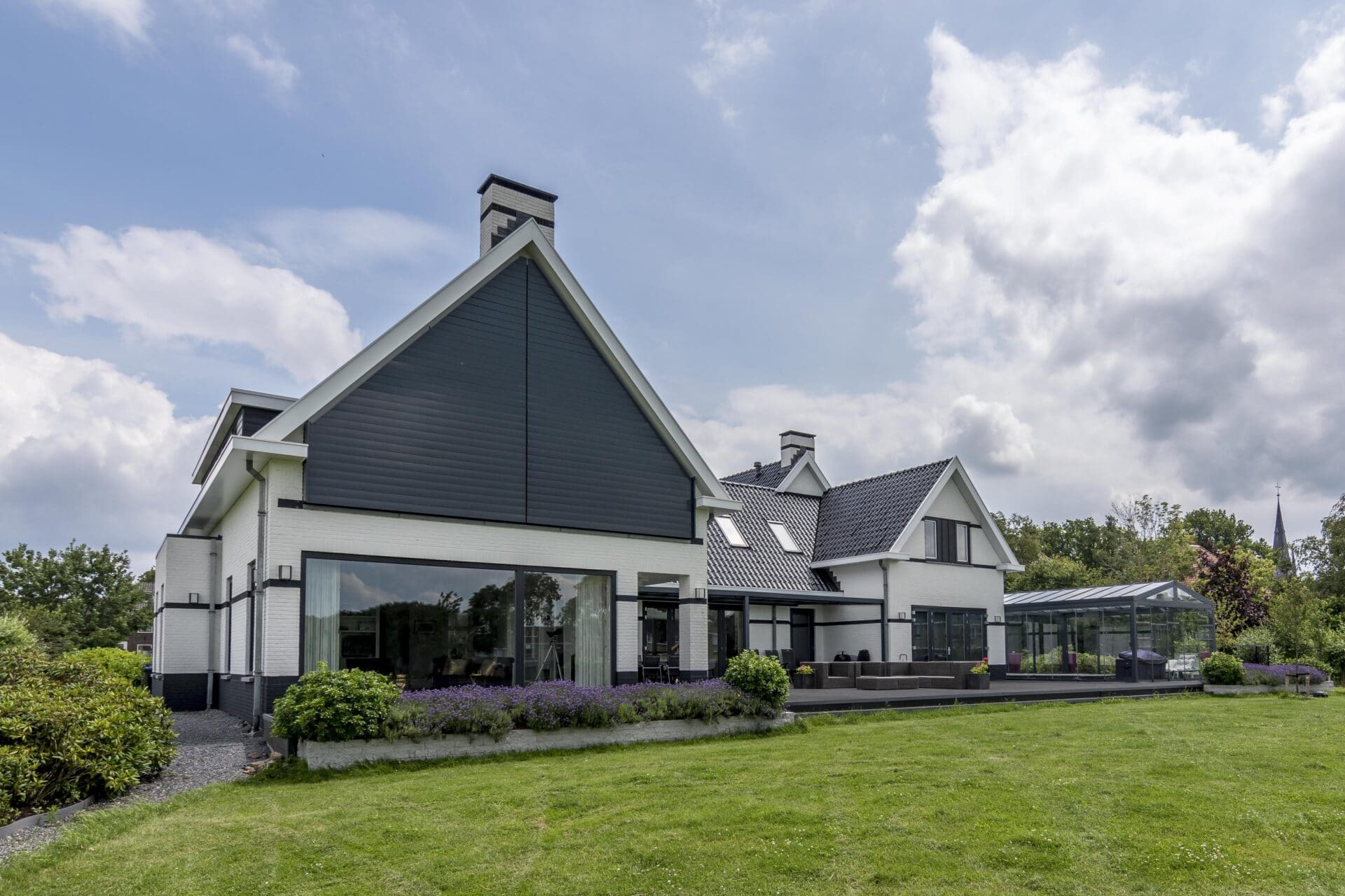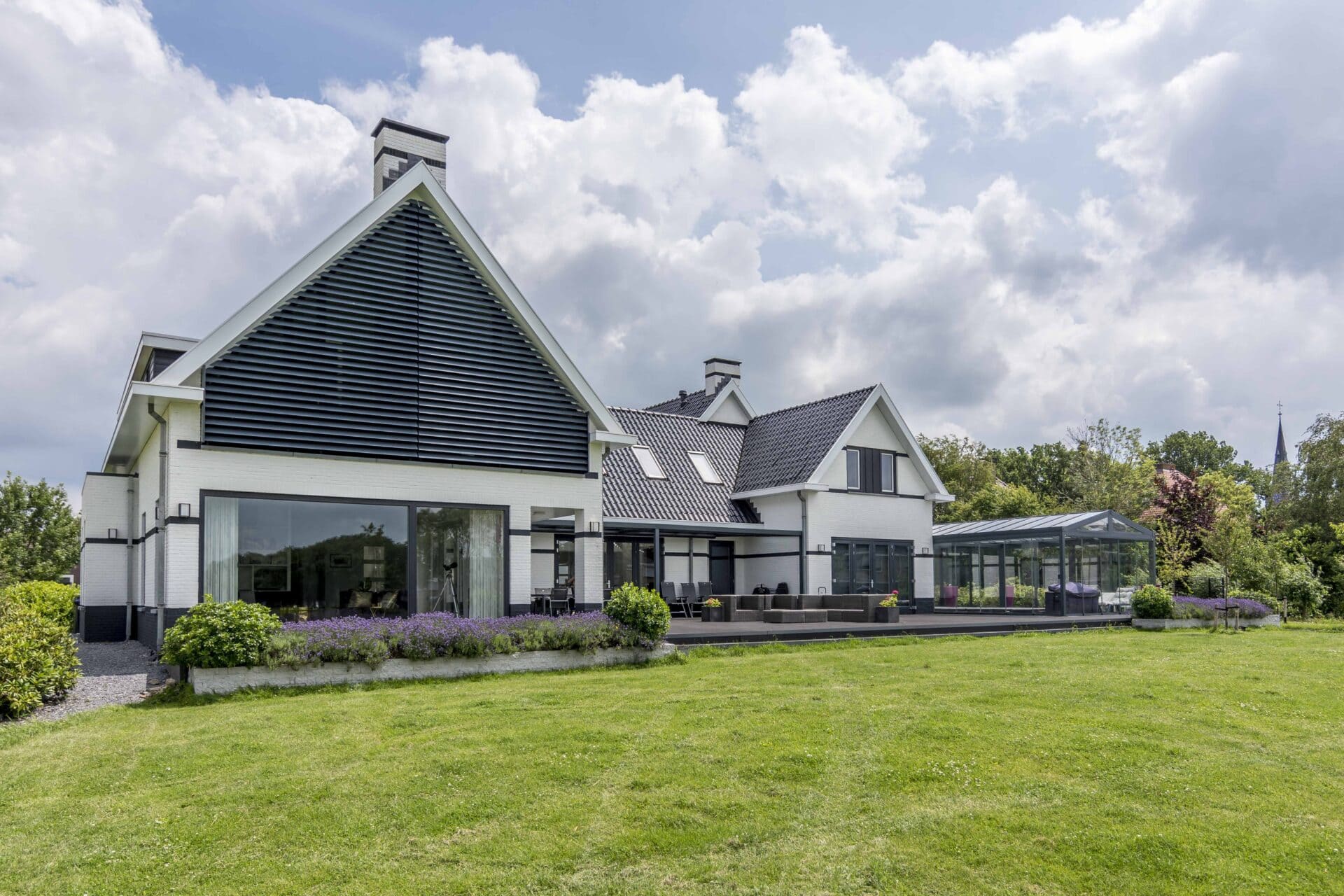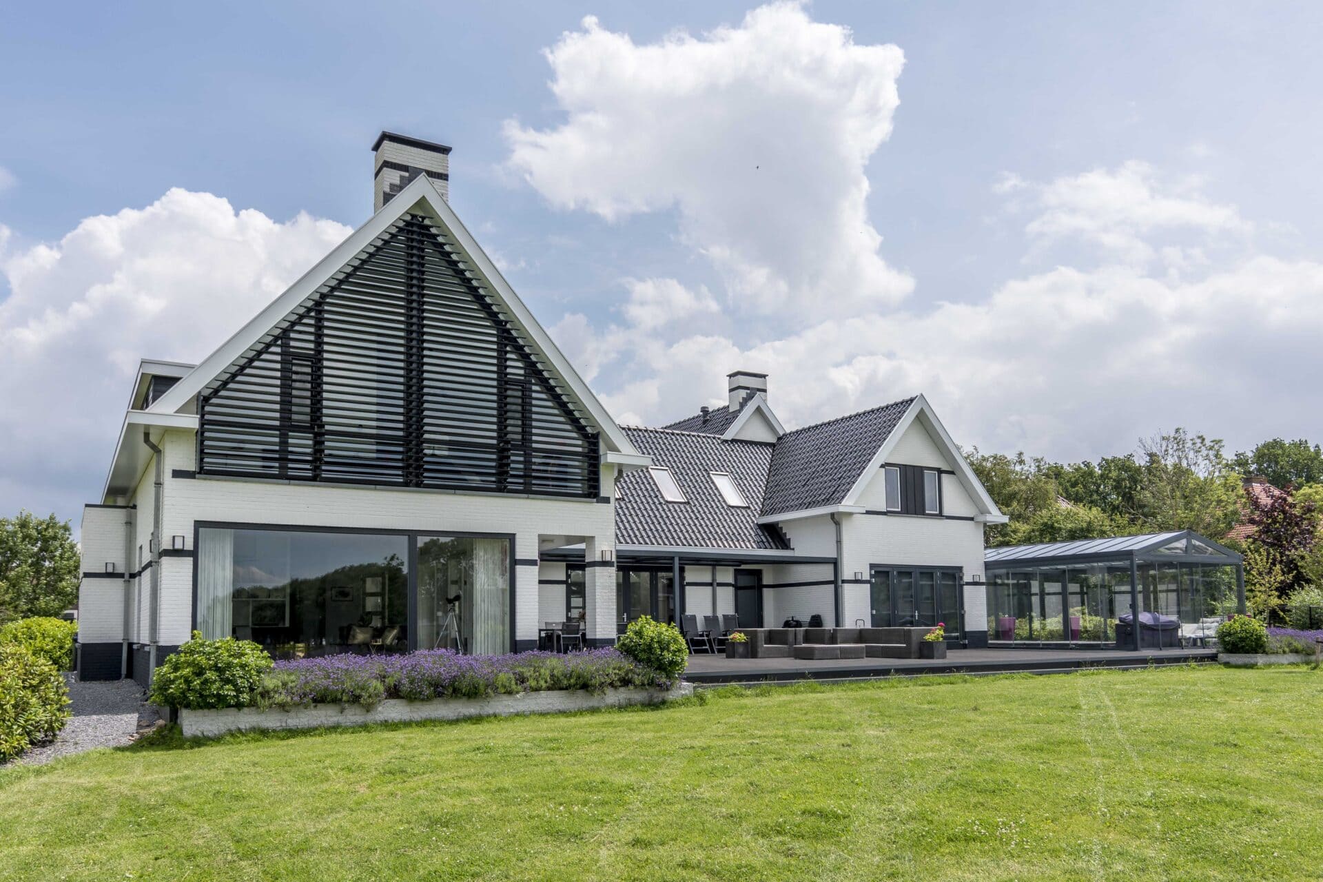 De gevels van een landhuis in Nederhorst den Berg zijn uitgerust met Sunshield lamellensystemen, zowel aan de voor- als aan de achterzijde van de vrijstaande woning.