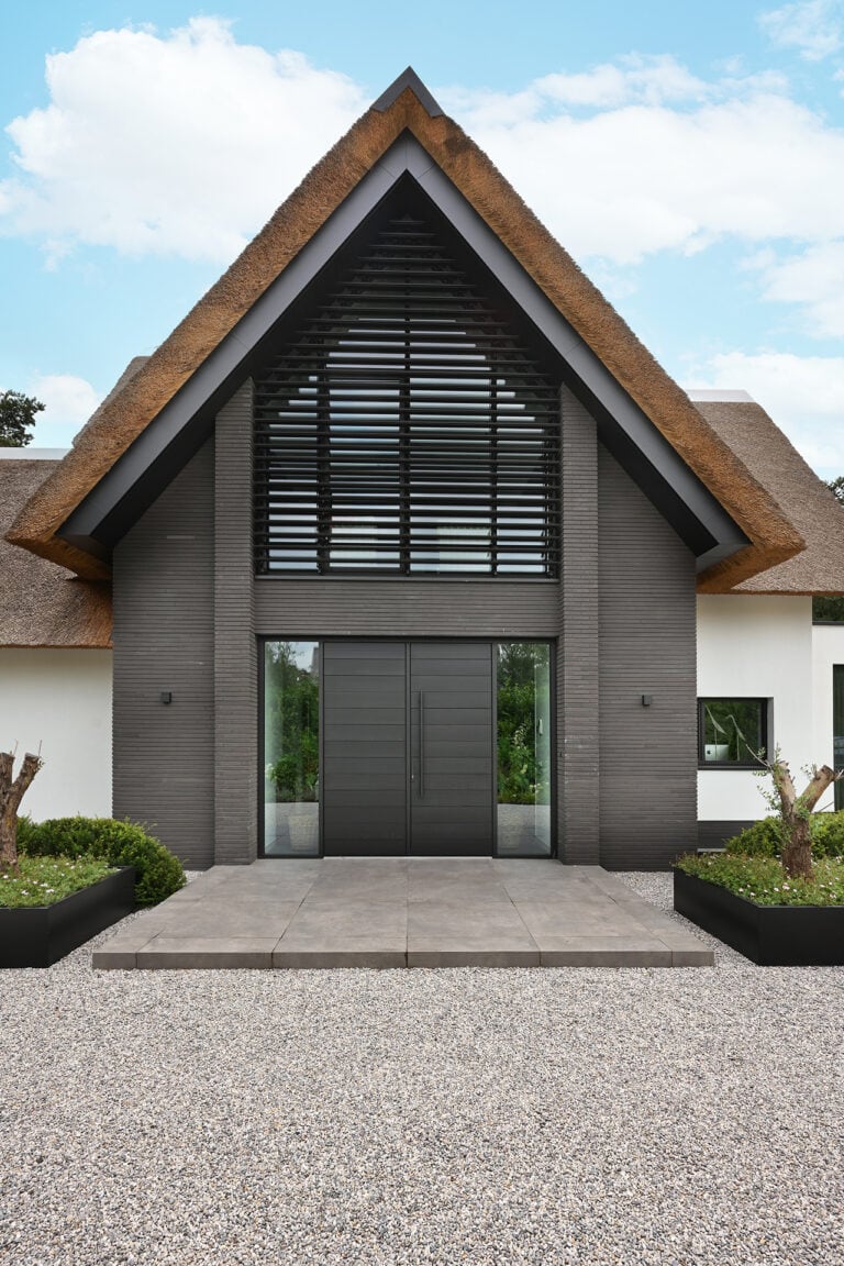 Het systeem aan de rechterkant van de ingang is bijna vier meter breed. De systemen links en rechts van de entree zijn allemaal ruim zes meter hoog.