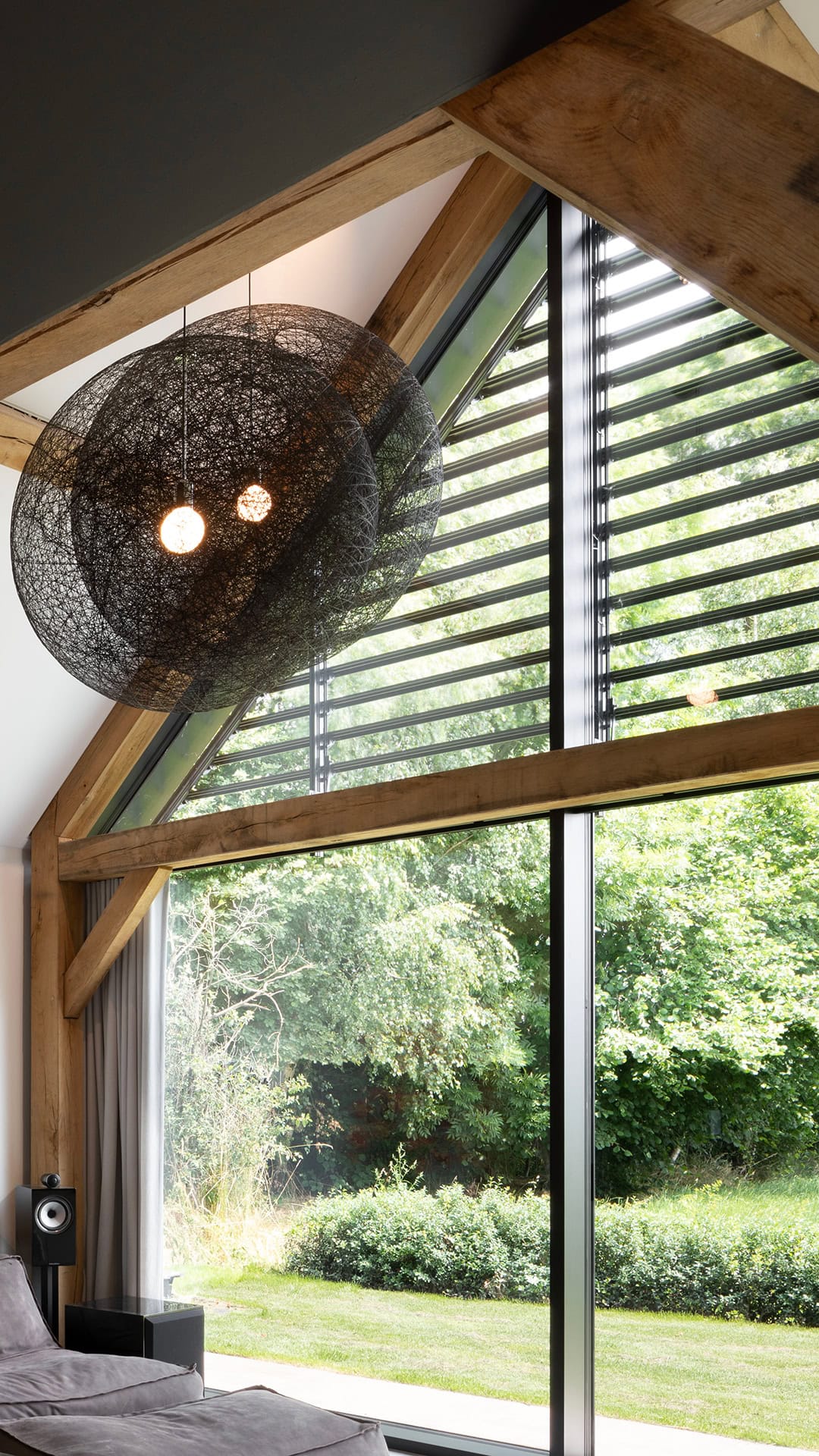 De bewoners hebben gekozen voor de UNIQUE 155E louver. Een lamel met een breedte van 155 mm en een stapgrootte van 140 mm.