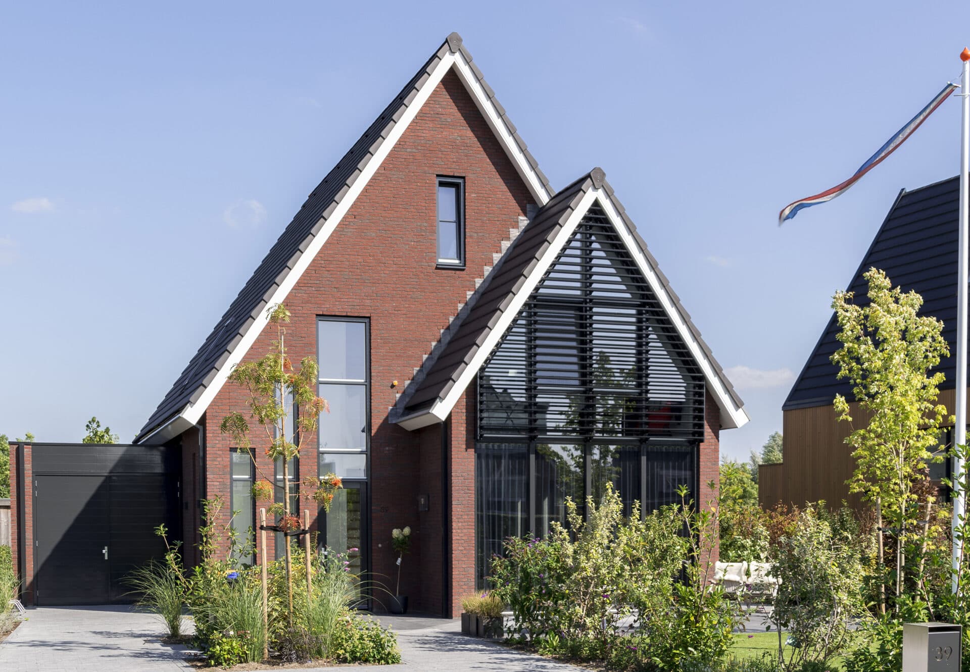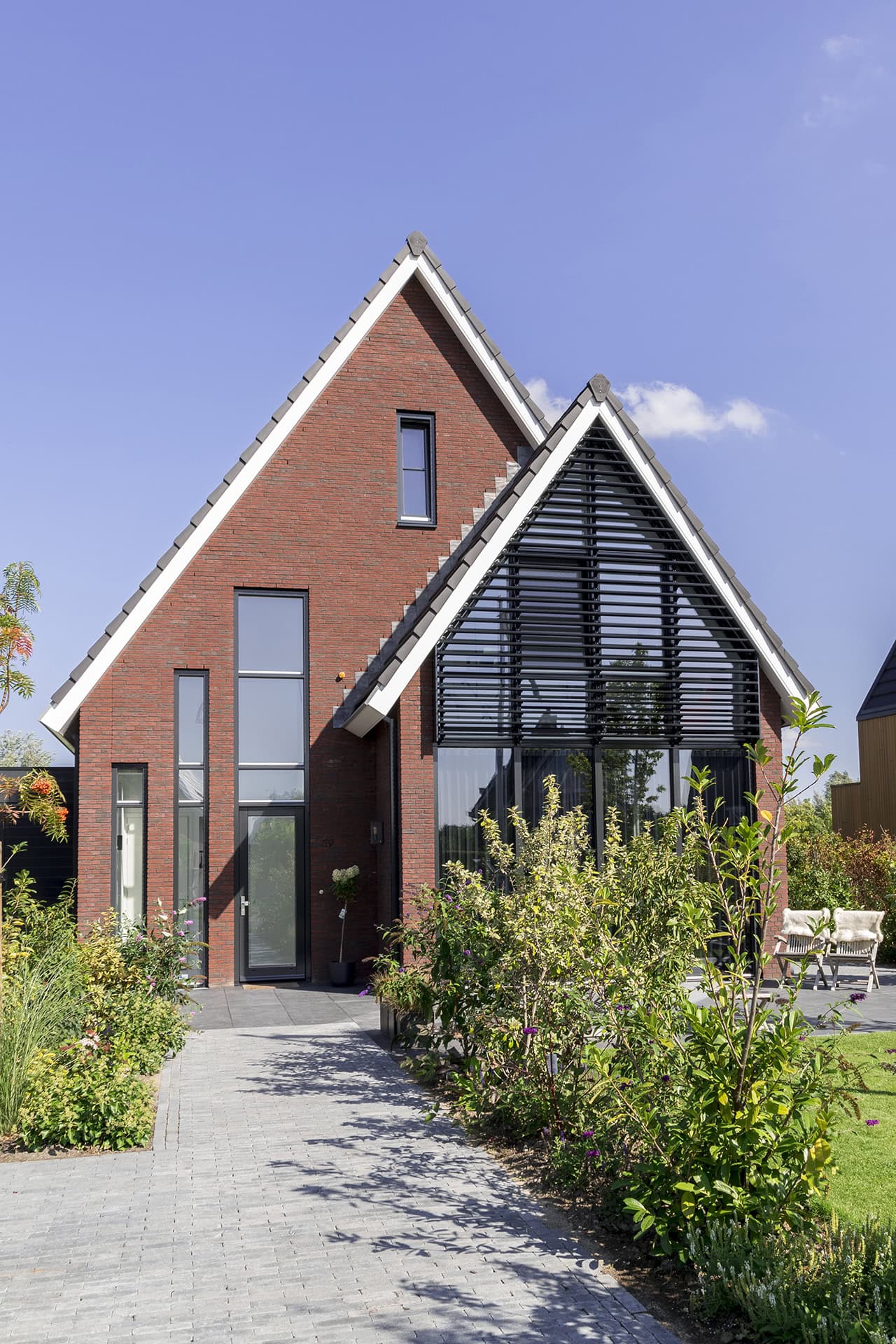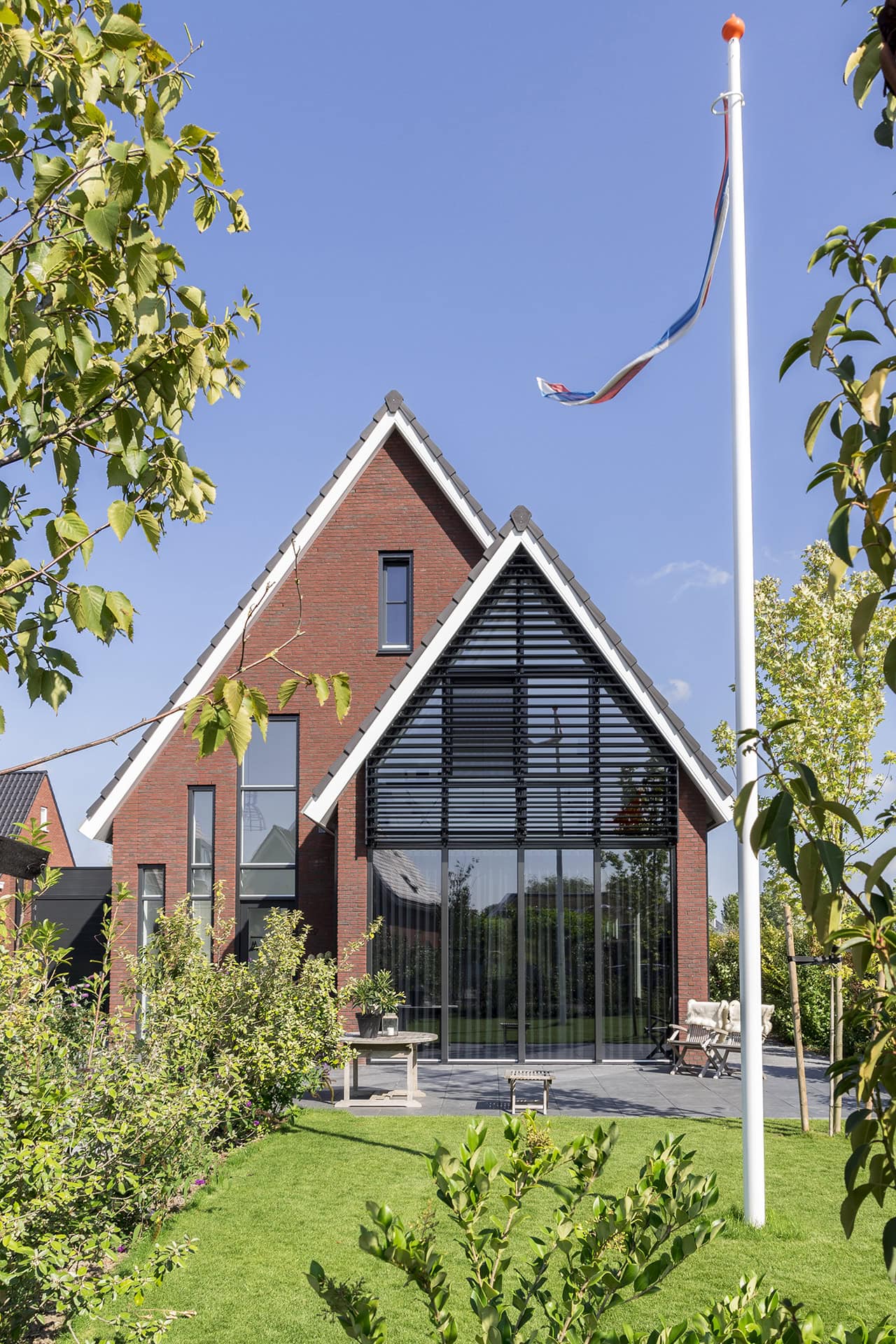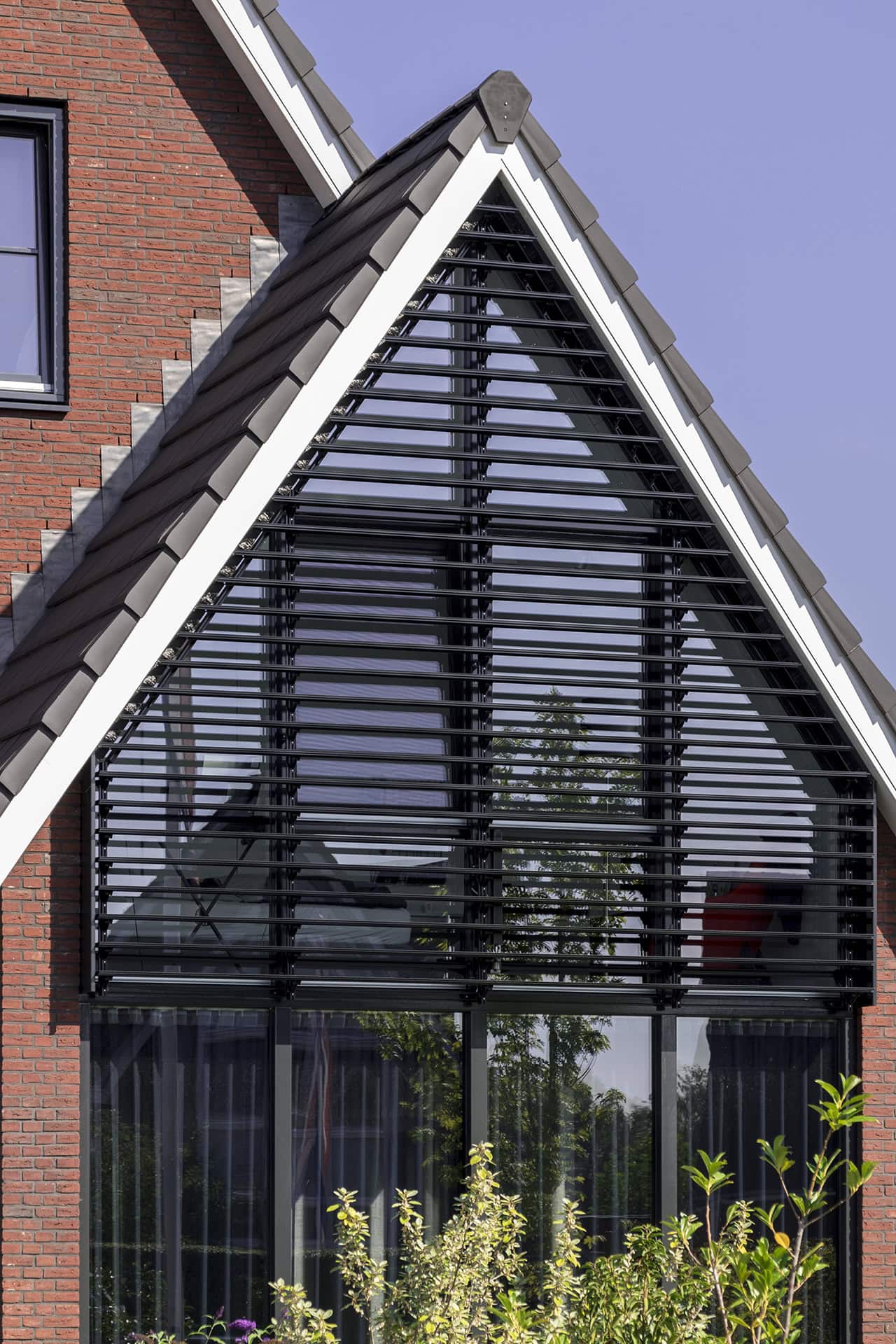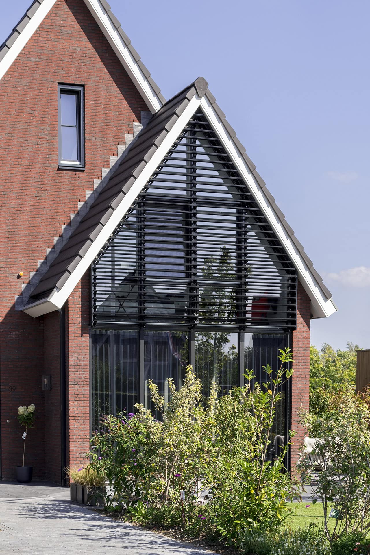 Hier is een residentie voorzien van unieke louvers, door Sunshield. In opdracht van Buitenhuis Villabouw zijn de voor- en achtergevels van een vrijstaand huis uitgerust met lamellensystemen.