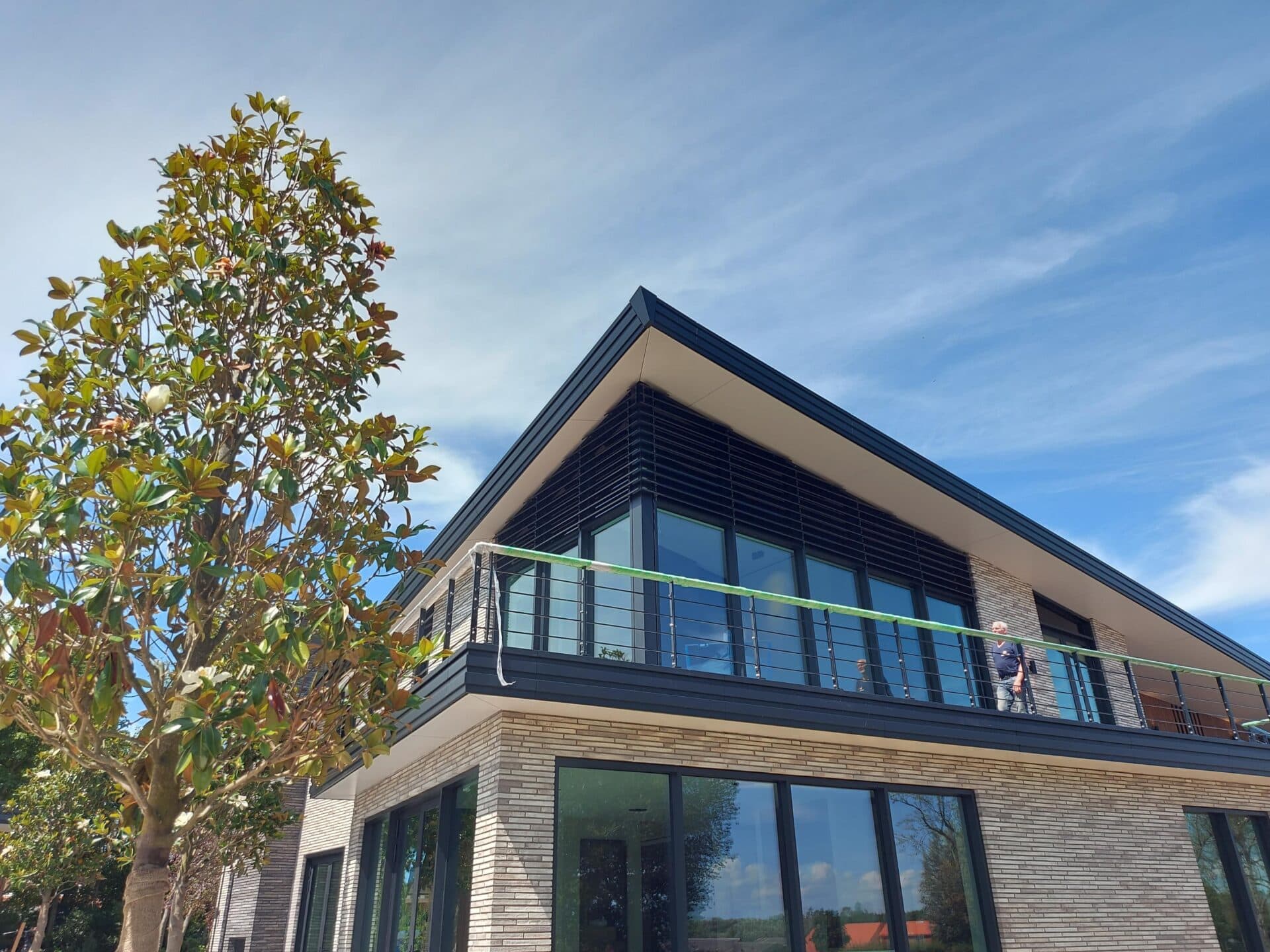 Alleen aan de bovenzijde van de ramen zijn louvers geplaatst. De voorkeur is uitgegaan naar de C100 lamel. Inderdaad, een C-vormige lamel met een breedte van 100 mm.