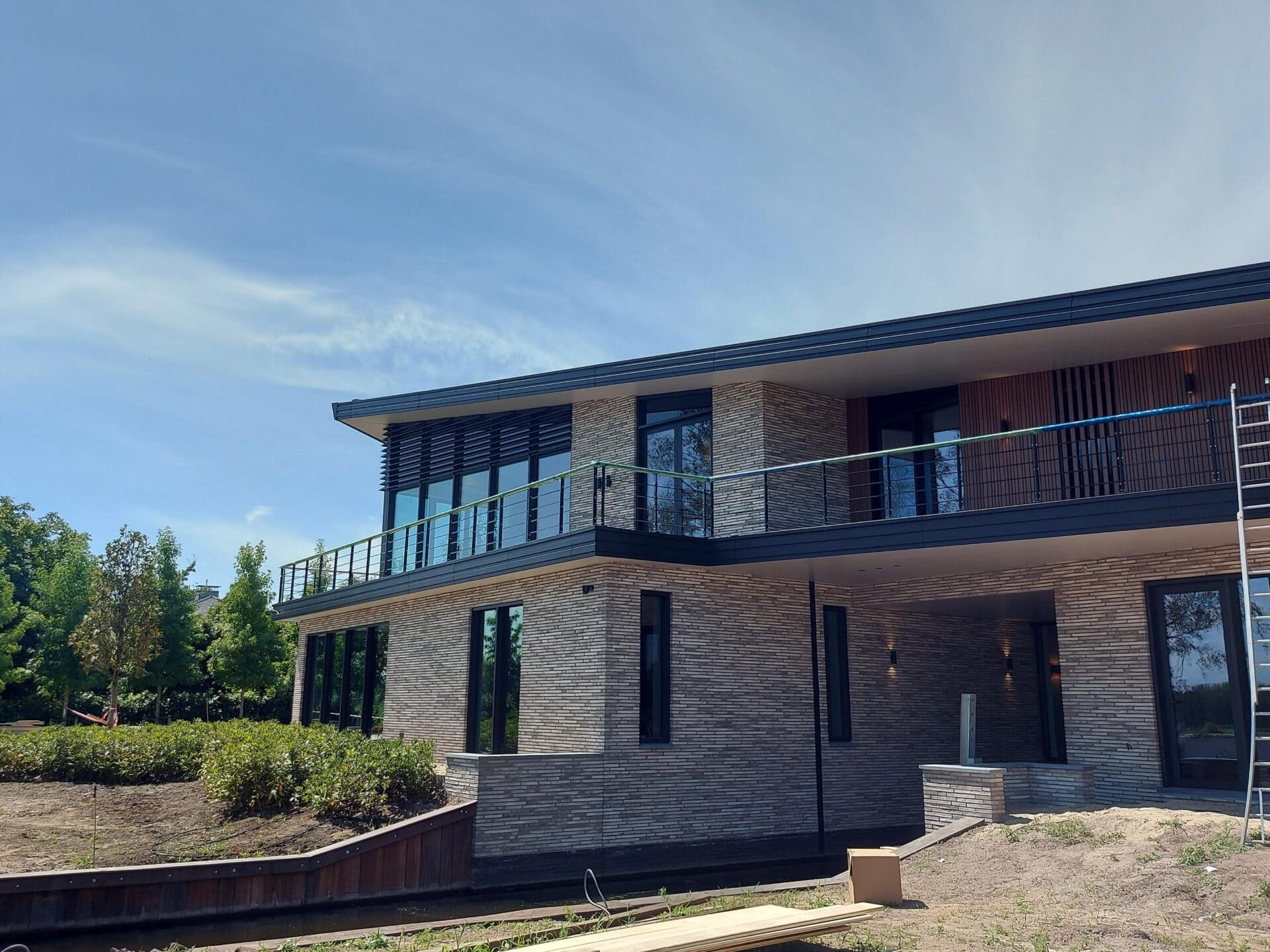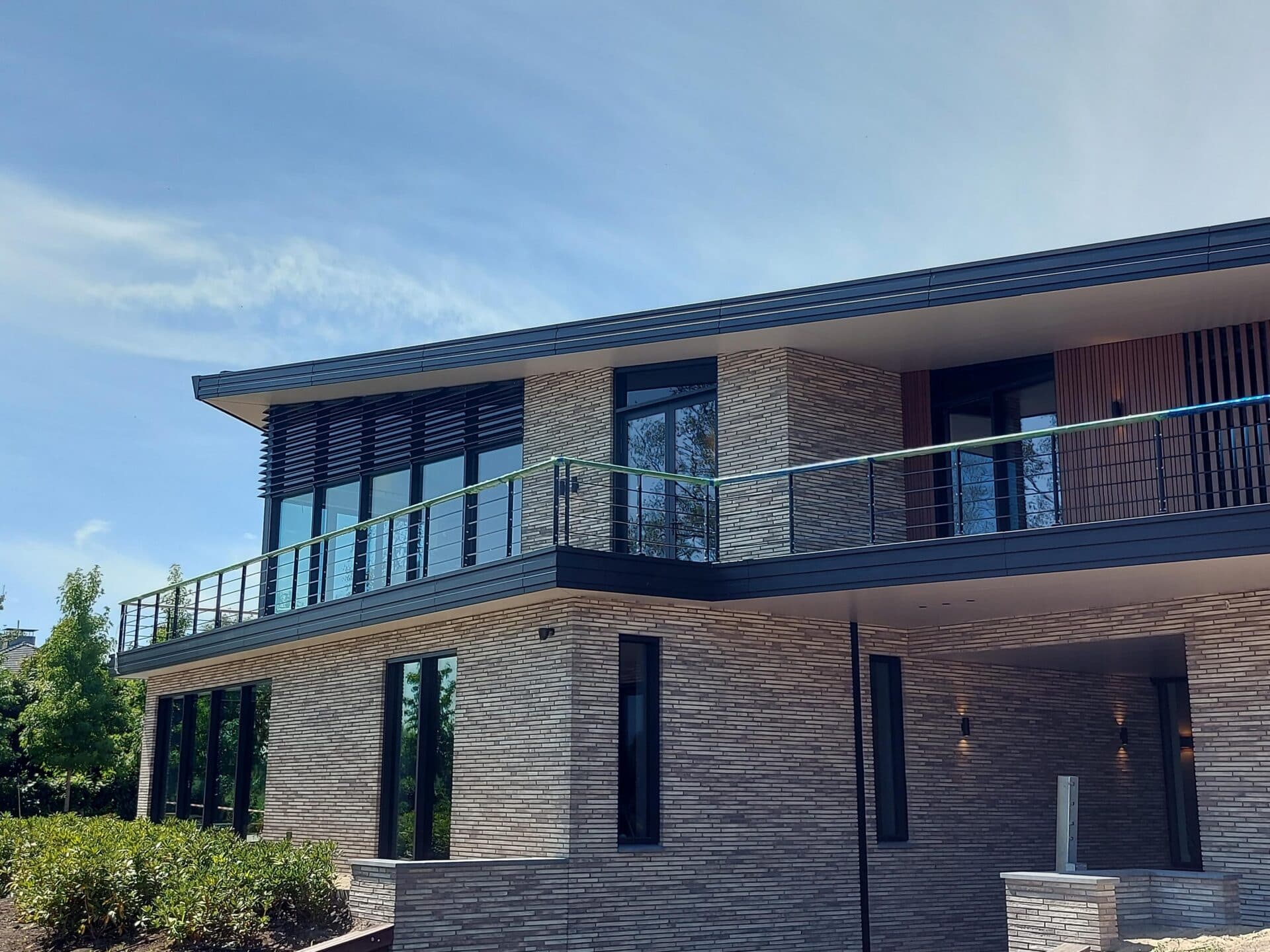 Hier is een residentie voorzien van unieke louvers. Door Sunshield, in samenwerking met Van Vliet Architecten in Leidschendam. In de ontwerpfase is gekozen voor lamellen in een vaste stand.