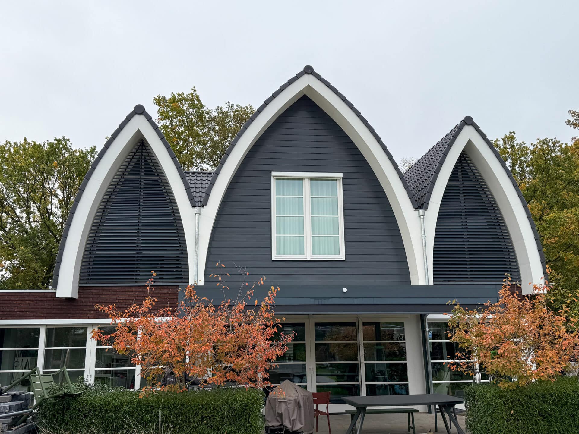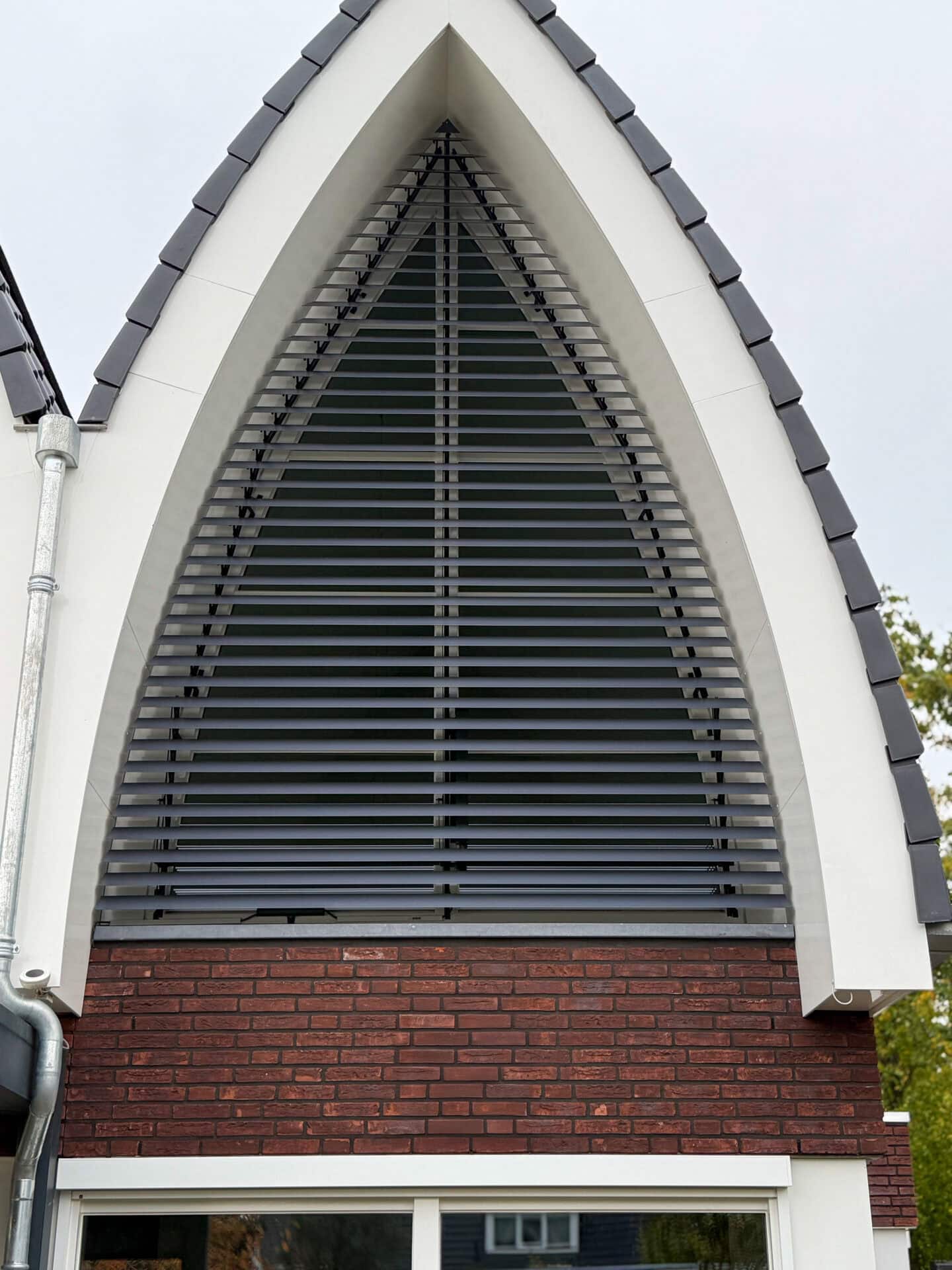 In Vught zijn in opdracht van Ambiance van Leeuwen twee schitterende boogvormige ramen voorzien van kantelbare lamellen.