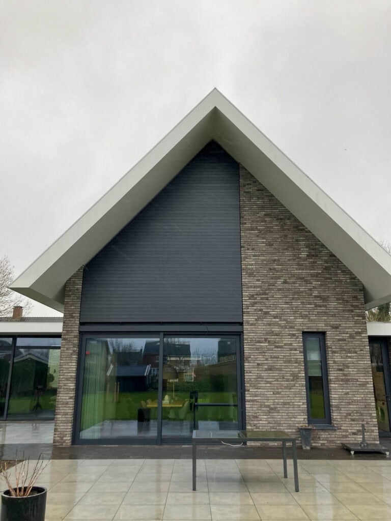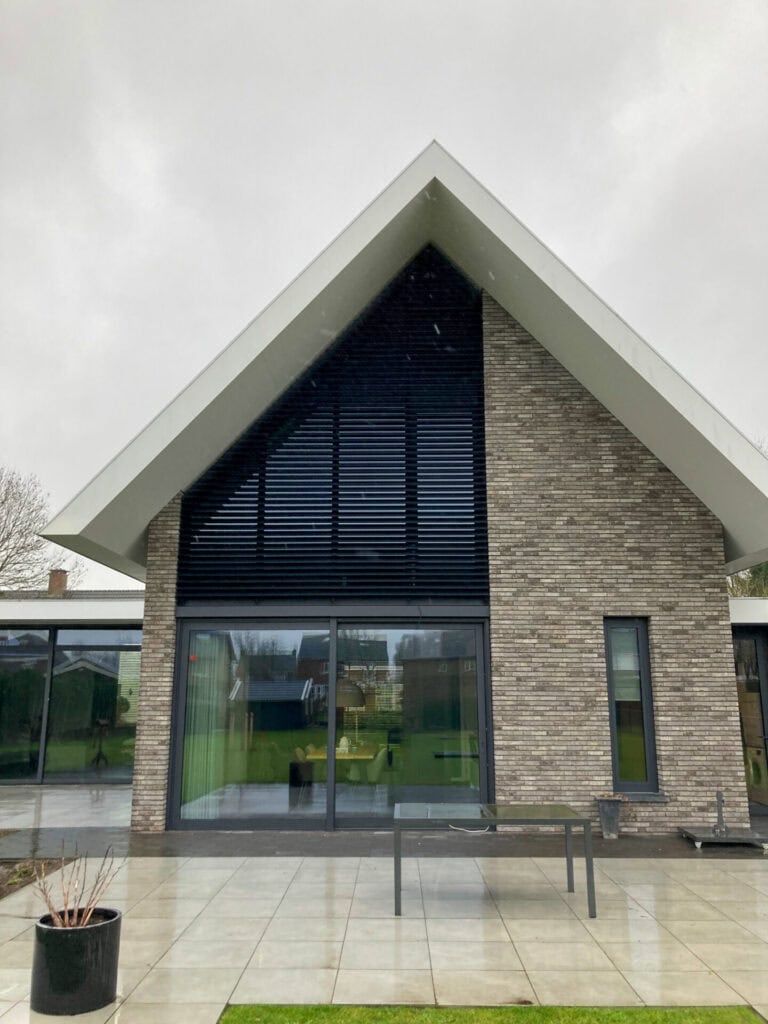De eigenaren hebben gekozen voor de UNIQUE 107E louver. Het profiel van de 107E toont een verdieping, waardoor de lamellen niet alleen over elkaar, maar in elkaar vallen.