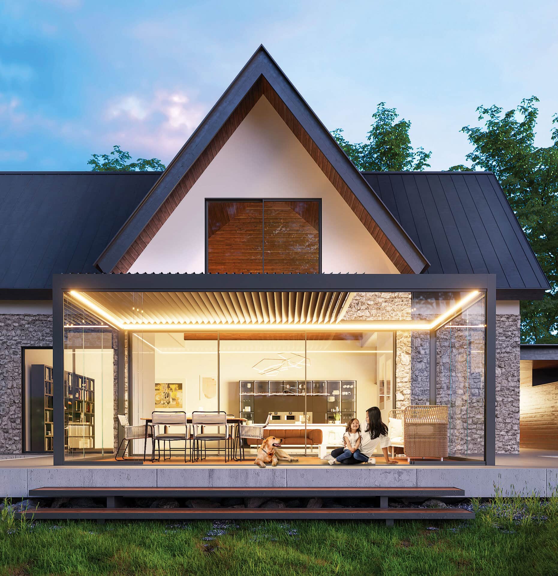 De Sunshield Rectini is het enige louverdak met draaibare lamellen die je volledig elektrisch kunt samenvouwen. Je hebt dus ontzettend veel mogelijkheden voor het regelen van inkomend zonlicht en ventilatie.