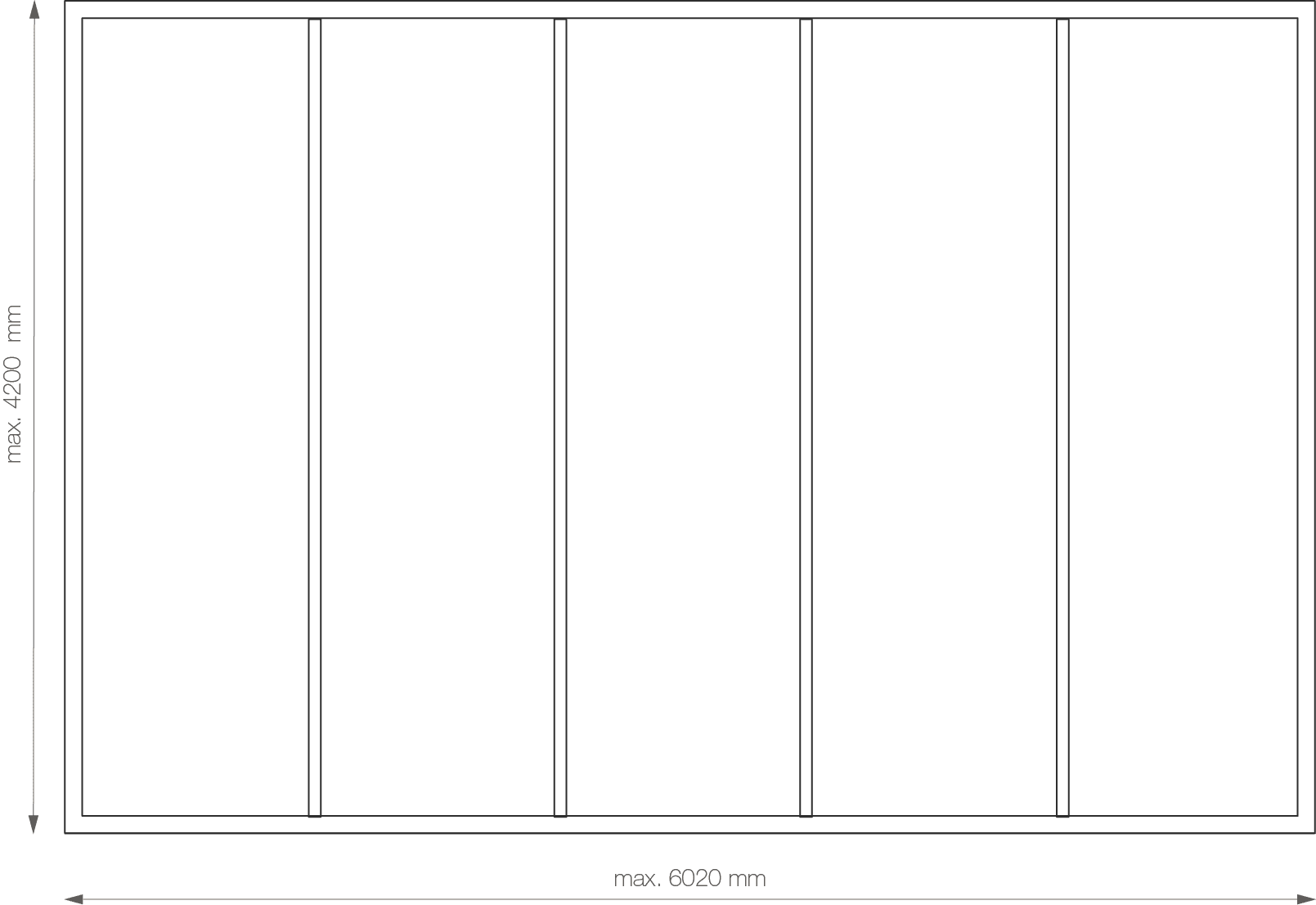 De maximale breedte van een Rectini is, 3,1 of 4,2 meter. Dit wordt bepaald door de gekozen lamel. De minimale diepte is 1,4 meter en kan oplopen tot maar liefst 6,2 meter.