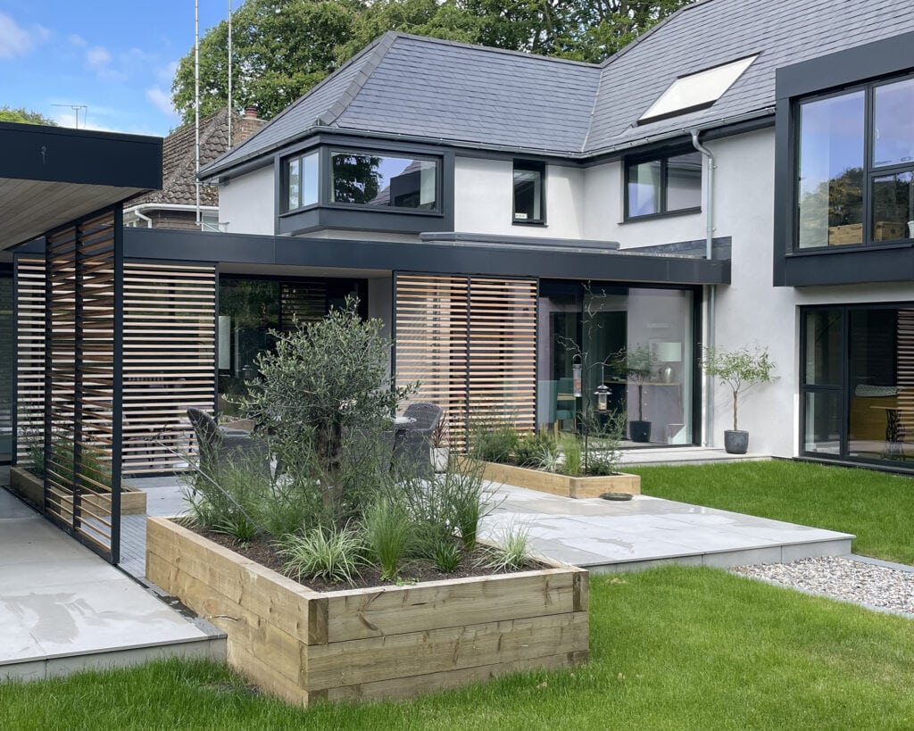 Door Sunshield technologie is dit product een unieke oplossing voor gevels met een punt. Versterk het unieke karakter van je droomhuis met de op maat gemaakte gevel lamellen van Sunshield.