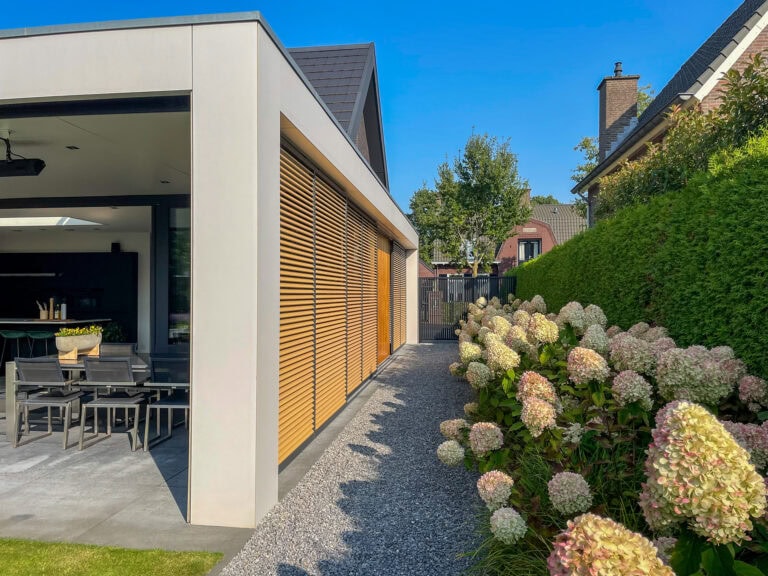 Projecten waar we trots op zijn Laat je inspireren door onze projecten waar uniek design en functionaliteit samenkomen. CategorieAAN HUISLamellen voor de gevel— Puntgevel— Driehoek— Grote rechthoek— Bogen en cirkels— Meerdere ramen— Bijzondere ontwerpen— Lamellen binnen toegepastVerticale lamellen— Kantelbare lamellen— EleganceSchuifpanelen en shutters (aan huis)— Aan de gevel / voor de ramenLamellen op of in het dak— Met het dak meelopend— Voor lichtkoepels (lamellen aan binnenzijde)Lamellendak (aan huis)— Inbouw lamellendak— Aanbouw lamellendakVOOR TUIN & TERRASLamellendaken (voor tuin en terras)— Inbouw lamellendaken— Aanbouw lamellendaken— Vrijstaande lamellendakenLamellenwanden— Zijkant terras / overkapping— Design & vast— SchuttingSchuifpanelen en schutters (voor tuin en terras)PoortenVouwpanelenSerre en wintertuinEyecathers UitvoeringKantelbare lamellenLamellen in een vaste standEleganceSchuifbaarAfwijkende vormHorizontale lamellenVerticale lamellen LamelvormVlakEllipsRechthoekGebogenRhombusZ-vorm MateriaalAluminiumHout KleurHout – onbehandeldHout – behandeldHoutlook op aluminiumWitDonkere grijstintenZwartBruin / Brons / Goud LamelgrootteTot 80 mm81 tot 119 mm120 tot 179 mm180 tot 259 mmGroter dan 260 mm Landhuis in bosrijk Arcen voorzien van gewelfde gevellamellen Lees meer over dit project Aluminium schuifpanelen en louvers van risaliet uitgevoerd in dezelfde houtlook Lees meer over dit project The Art of Living The Art of Living Bij een stadsvilla zijn drie Quadro louver daken ingebouwd in de overstek Lees meer over dit project Schitterende boogramen in Vught voorzien van unieke kantelbare lamellen Lees meer over dit project Klantverhaal Polygoonvormige glasgevels in Hilvarenbeek voorzien van kantelbare lamellen Lees meer over dit project The Art of Living The Art of Living Met kantelbare lamellen blijven bewoners van deze villa genieten van het fraaie uitzicht Lees meer over dit project Landhuis met lamellen aan de voor- en achtergevel Lees meer over dit project The Art of Living The Art of Living De daklichtlamellen van deze villa integreren naadloos met de zonwering boven de entree Lees meer over dit project Ramen met bijzondere vormen in Urk voorzien van kantelbare lamellen Lees meer over dit project Zonwering van onbehandeld hout is de kerst op de taart voor landhuis in Reusel Lees meer over dit project Posts navigation 1 2 3 4 … 7 Next