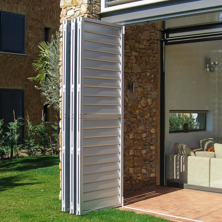 Door Sunshield technologie bieden vouwbare wanden met lamellen de ene een royale vrije doorgang en de andere keer privacy. Versterk het karakter van jouw droomhuis met op maat gemaakte poorten en deuren met lamellen van Sunshield.